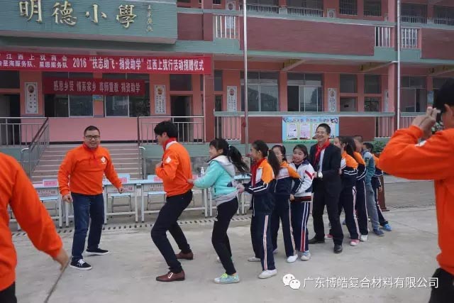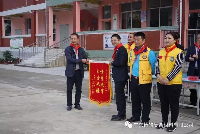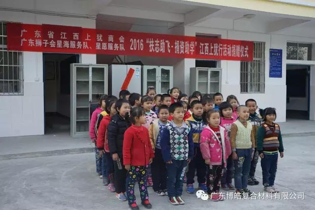 捐贈儀式上,廣東江西上猶商會會長、廣東博皓復合材料有限公司董事長賴厚平先生向陡水中心小學、平富中心校和營前鎮(zhèn)石溪小學等學校贈送了課桌、學習用品、電腦設備等教育教學物資及助學金,在講話中,賴厚平先生勉勵同學們勤奮學習、自強不息,把暫時的艱苦作為成長生活中的磨煉和精神財富的積累,把感激之情化為成才之志,發(fā)奮之源,用優(yōu)異的成績回報社會。